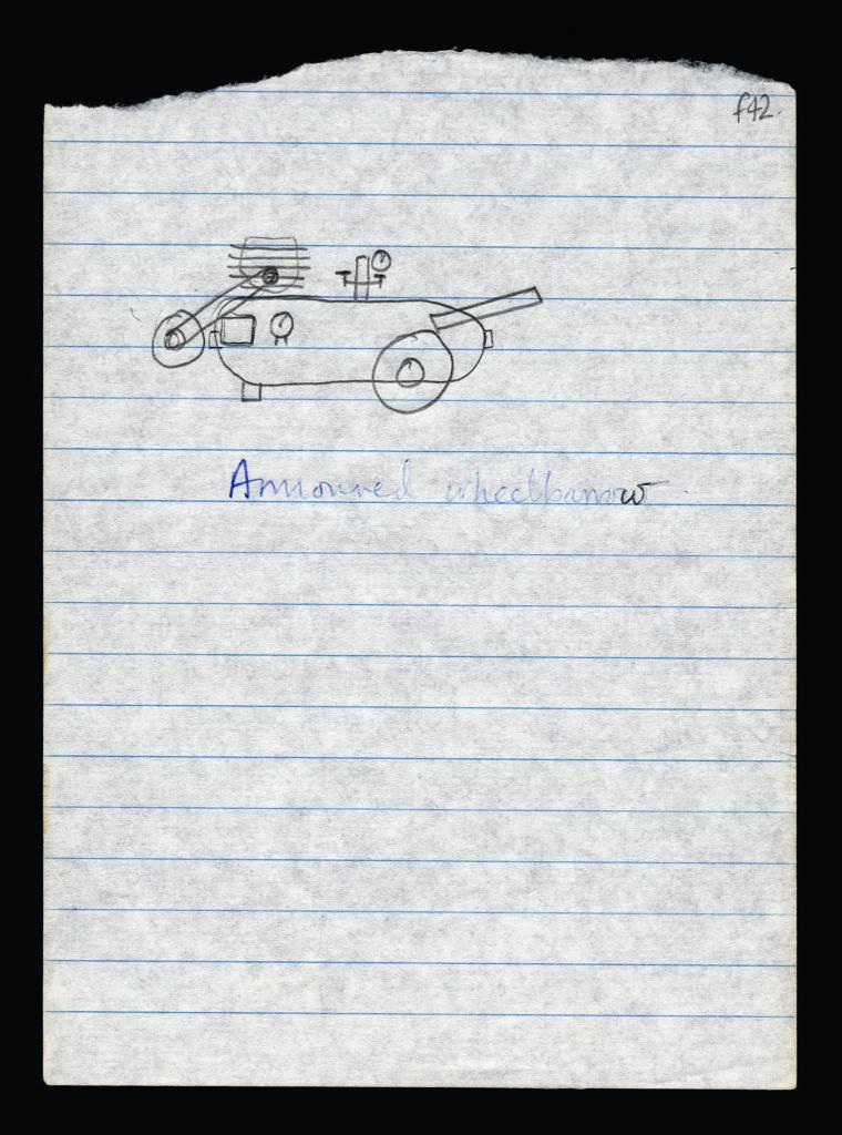 - Spiral-bound A5 notebook containing notes on the story, a description of the life of a ‘Bladdersaurus’, and short reviews of stories written by Mark’s own pupils(?)