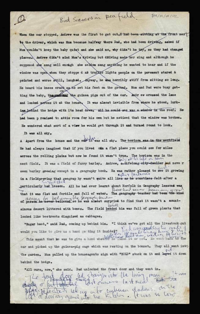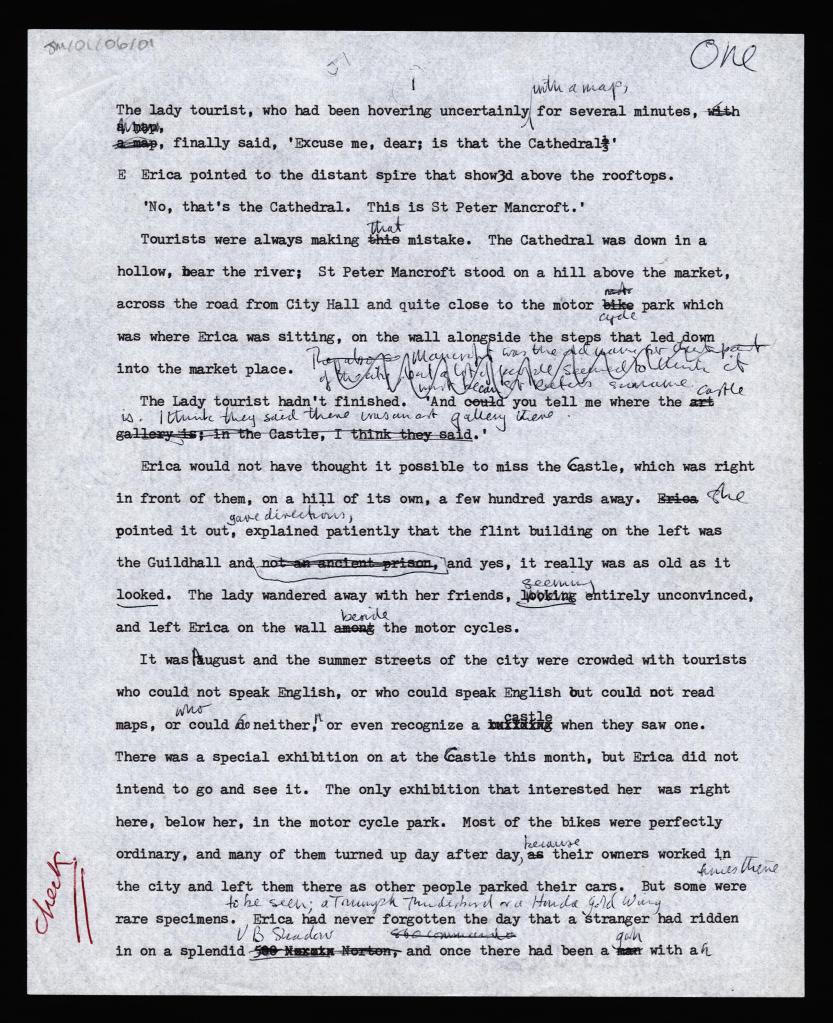 - Draft TS (3rd according to folder) with occasional annotations and a compliments slip from ‘Jackie’ at Kestrel Books which reads “Returned for your archives!”, and is dated 23/6/78.
