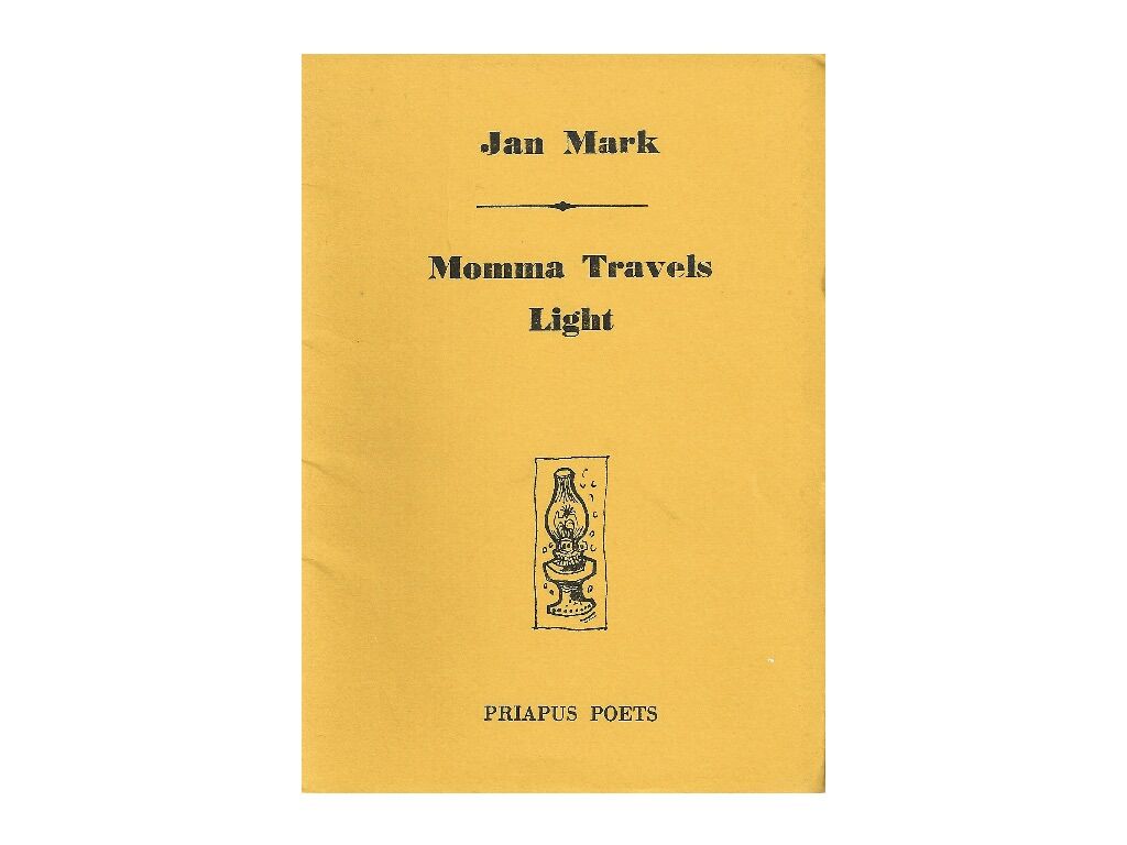 The brilliance and variety of her own short stories is well-known and has been appreciated by young and older readers who enjoyed and admired the stories she published in her own collections and in the many anthologies in which hers were the standout contributions, and acknowledged by the many critics and reviewers who celebrated her mastery of the form[1]. But what is perhaps less well known is that Jan wrote poetry and that a small booklet of her poems, entitled Momma Travels Light, was published in 1987. It was produced in the form of a pocket-sized chap book by the poet and teacher John Cotton under the imprint of his own Priapus Press, in an edition of only 100 copies, one of which I own and I’m happy to share with janmark.net readers.