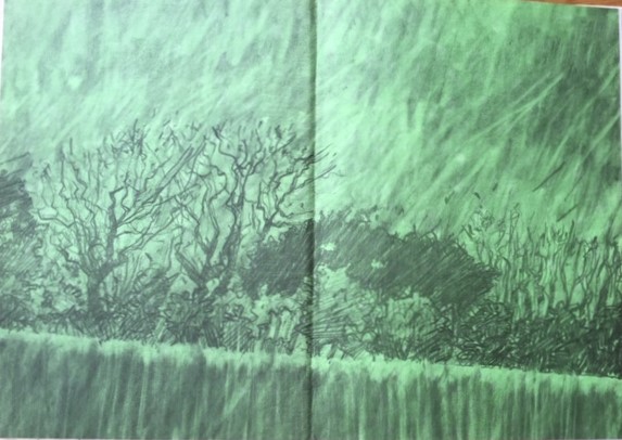 ‘He stared incredulously at her sprawling portrait; the face with both eyes on one side of the head, the long arm and the short, the fat leg and the thin, the unequally fingered hands and toeless feet, and spread anamorphic torso: a very accurate representation he thought, as the lights went out, the ceiling tilted askew and Cathy’s surprised face slewed away from him, of what must now lie under the hedge at the bottom of the garden.’