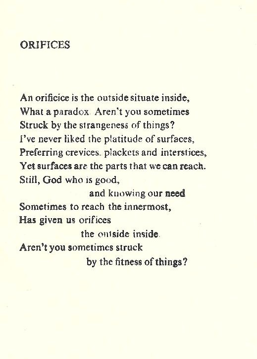 Has given us orifices the outside inside