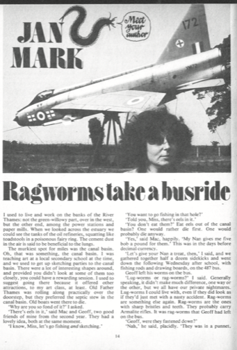 ‘Lug-worms or rag-worms?’ I said. Generally speaking, it didn’t make much difference, one way or the other, but we all have our private nightmares. Lug-worms I could live with, even if they did look as if they’d just met with a nasty accident. Rag-worms are something else again. Rag-worms are the ones with sharp bristles and teeth. They probably carry Armalite rifles. It was Rag-worms that Geoff had left on the bus.