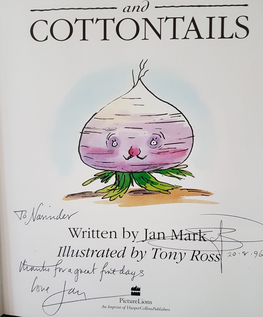 ‘Jan signed a copy of one of her books for me when we said goodbye. It was Carrot Tops and Cottontails which I think is one of my most favourite picture books ever, by any author!’
